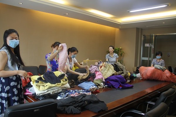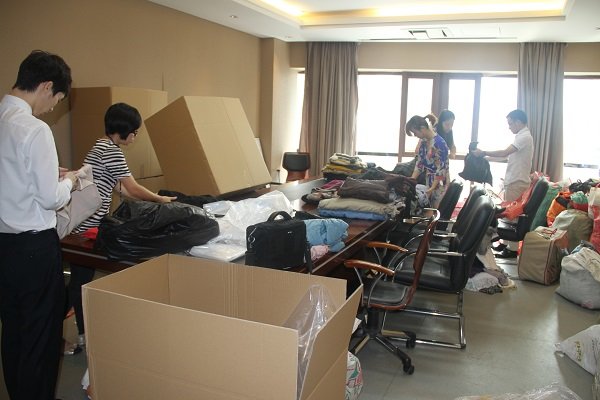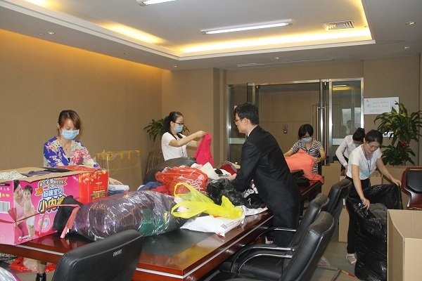 作为本次捐赠活动的主场,9月16日,在集团各公司行政人员的配合下,上千件衣物在集团9楼会议室进行整理并打包装箱。9月17日下午,在工作人员的帮助下,近20箱衣物被送往中国邮政速递公司,办理相关邮寄手续后,一并寄往甘肃。