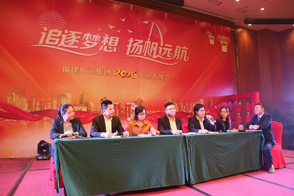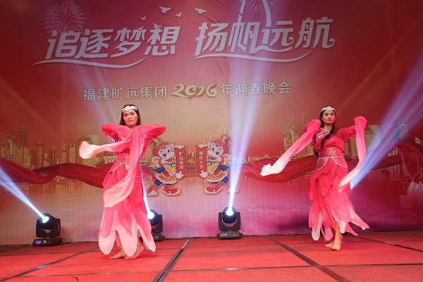 手执油纸伞的酒店前厅部美女们的舞蹈《烟花三月》拉开了晚会第一篇章“旷远·追梦”的序幕,带着我们一同畅游江南;紧接着,集团贸易事业部朱杰一曲《青花瓷》,为我们描绘出了一番诗情画意;小品《到底该怨谁》将工作问题搬上了舞台解决,再次提醒了我们团队合作的重要性;由长沙房地产营销团队带来的热辣舞蹈《gentlemen的一分一秒》热络了晚会气氛,现场一片沸腾;随后的四首歌曲串烧,歌手们更是为我们演绎了经典曲目。晚会第二篇章“旷远·扬帆”以具有莆田文化特色的莆仙戏《春草闯堂》为开篇,酒店洗衣房阿姨们的精彩表演赢得台下阵阵掌声;旷远能源客服部的宫廷舞蹈《汉宫裳影》带着我们穿越到汉朝,感受不一样的文化;旷远房地产同事们的一曲《朋友》道尽了友情的可贵,亦提醒我们珍惜携手并肩的战友;南丰萌萌哒同事们的舞蹈《感觉自己萌萌哒》为我们展现了青春活力与激情。晚会最后一个篇章“旷远·远航”,以长沙房地产王佳的萨克斯独奏《春风》开篇,让我们无不惊叹集团的卧虎藏龙;旷远能源小鲜肉们的舞蹈《uptown funk》将晚会推向了高潮,集团特邀嘉宾及高管纷纷上台学习舞蹈动作,优美的舞姿赢得台下掌声不断;宏盛市政一曲《惊鸿舞》再次带领我们感受宫廷舞蹈的魅力;旷远能源仙游分公司陈宗彬的独唱《男人哭吧不是罪》将歌曲演绎得淋漓尽致;上杭客家妹们带来的舞蹈《我是客家妹》为我们呈现了上杭特有的风俗舞蹈;随着一曲大合唱《难忘今宵》晚会进入了尾声。晚会现场除了节目表演,还穿插了互动游戏和抽奖环节,晚会高潮处,集团董事长王子林、集团特邀嘉宾、部分高管更是上台献唱,气氛融洽且热络。